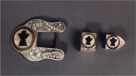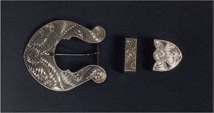 3 piece belt buckle set Heavy sterling silver overlay Fully hand engraved |