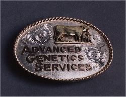 3" x 4" buckle Heavy sterling silver overlay Hand cut bronze letters Bronze Angus head overlay Bronze twisted rope edge |