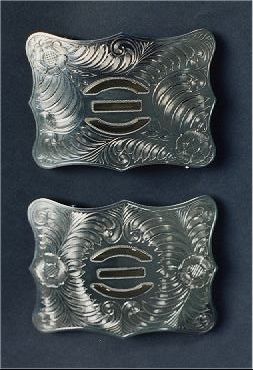3 1/2" x 4 1/2" buckle Solid Sterling Hand engraved initials Fully hand engraved |