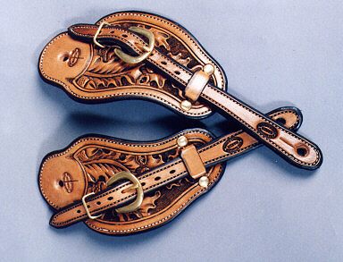 Spur Straps Oakleaf Carved Buckaroo Style Lined and Stitched